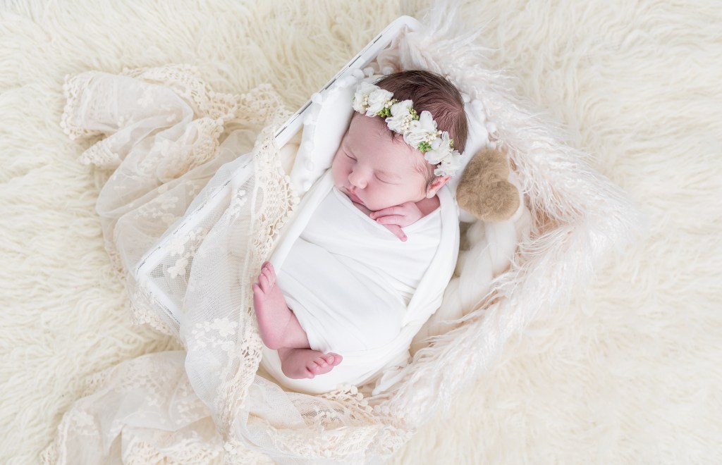 Les poses pour bébé sont simples, je privilégie le côté naturel et cocooning.